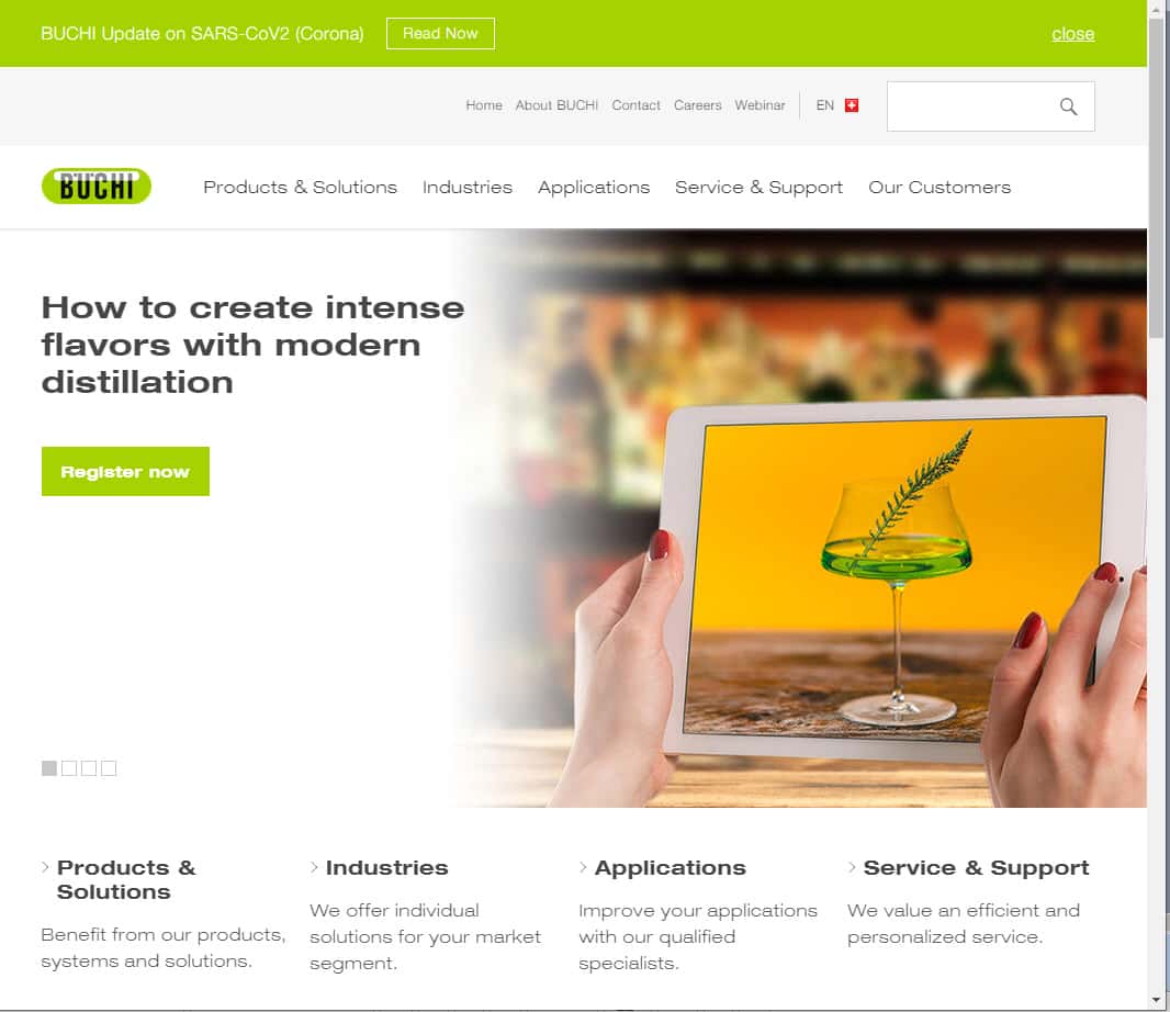BUCHI Labortechnik AG 是一家擁有超過 85 年專業經驗的瑞士公司,總部位於瑞士東部。 BUCHI 致力於為全球研發、品質控制和生產實驗室提供創新的實驗室技術解決方案。其產品和工藝創新深刻影響並塑造了現代實驗室的運作方式。BUCHI 的全球網絡遍布 20 多個國家/地區,設有銷售機構和支持中心,並與 70 多家認證分銷夥伴合作,確保全球客戶都能獲得及時的服務和支援。