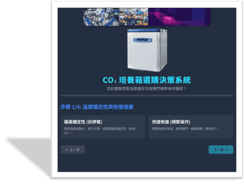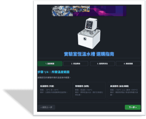 儀器選擇動態指南I『告別盲選!秒級,儀器精確決策的動態指南』 只需點選需要的找尋的儀器,我們的動態指南幫您快速篩選!! 恆溫水槽 低溫恆溫循環水槽 振盪器、往復式恆溫振盪水槽 各種培養箱 CO2 培養箱 恆溫恆濕箱 植物生長培養箱 減壓旋轉濃縮機 冷凍乾燥機 真空濃縮離心機 噴霧乾燥機